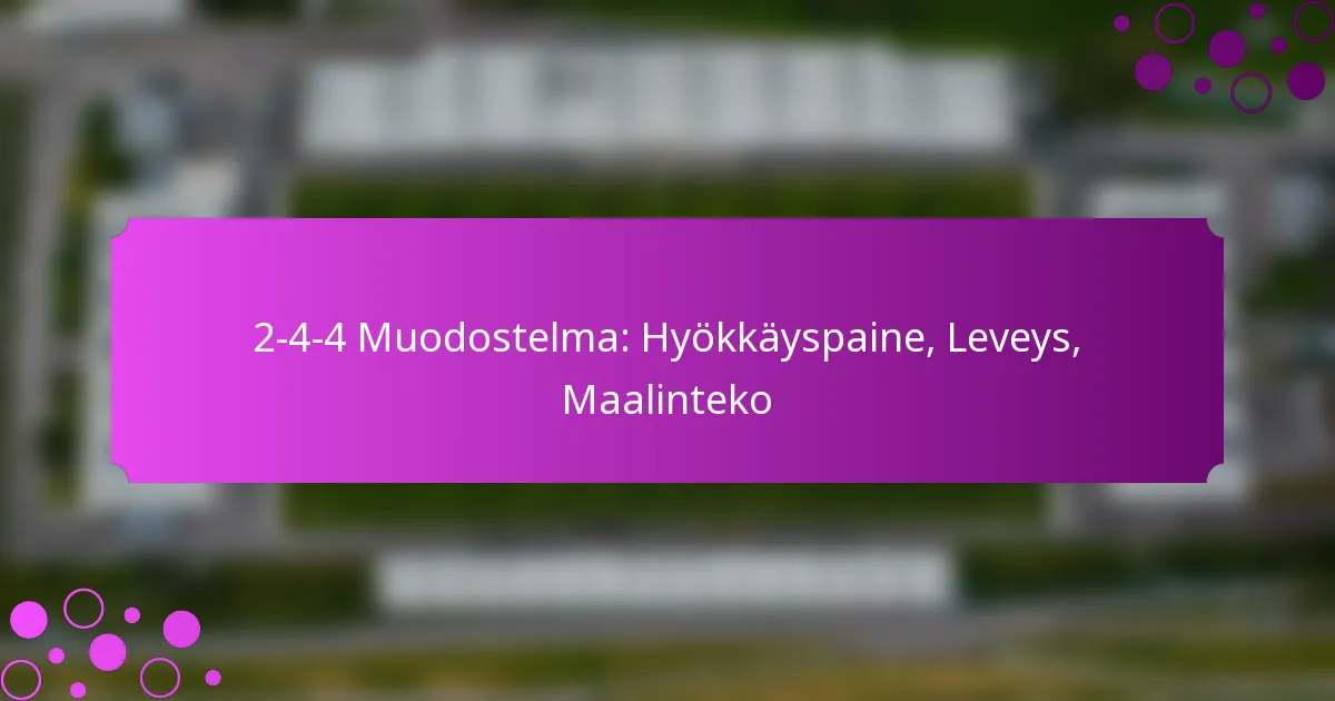 2-4-4-formaatio korostaa hyökkäyspainetta hyödyntämällä neljää hyökkääjää, jotka voivat kohdistaa jatkuvaa painetta vastustajan puolustukseen. Tämä asettelu mahdollistaa nopean pallon liikkeen ja luo useita hyökkäysvaihtoehtoja, jotka voivat ylivoimaisesti puolustajia. Joukkueet voivat hyödyntää puolustuksen aukkoja, mikä johtaa korkeampiin maalintekomahdollisuuksiin.