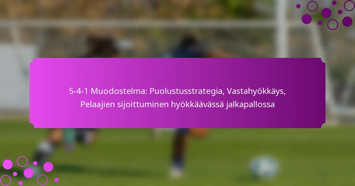 5-4-1 -muotoilu on puolustava strategia, joka korostaa vahvaa organisointia ja tiiviyttä. Siinä on viisi puolustajaa, neljä keskikenttäpelaajaa ja yksi hyökkääjä, mikä mahdollistaa joukkueiden ylläpitää vankkaa puolustusrakennetta samalla kun ne ovat valmiita vastahyökkäyksiin.